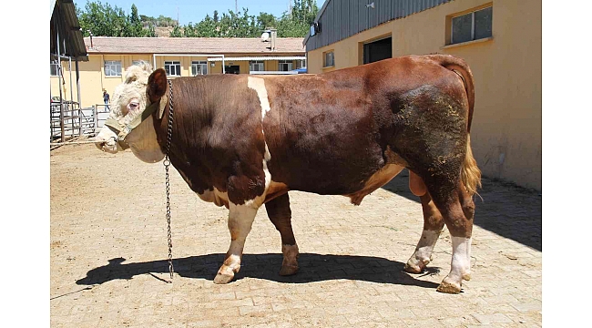 Elazığ'da 1 ton 200 kilogramlık 'Kral' isimli tosun 65 bin liradan alıcısını bekliyor.