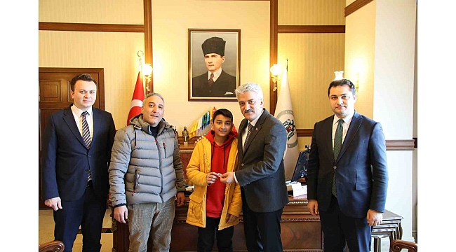 Erzincanlı 12 yaşındaki Muhammet Ensar Çelik, biriktirdiği harçlıklarıyla satın aldığı altını deprem bölgelerine gönderilmek üzere Vali Mehmet Makas'a teslim etti.
