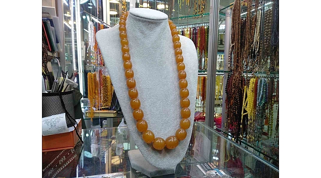 Kehribardan yapılmış at gerdanlığının 200 yıllık olduğunu ve değerli atların boynuna takıldığını ifade eden tespih ustası Mehmet Özen, "Bu gerdanlık özellikle değerli atların boynuna takılırmış. O dönemde atları pire ve hastalığa karşı koruduğu ifade ediliyor. Gerdanlığın fiyatı 50 bin lira. Damla kehribardan yapıldığı için çok kıymetli. Koleksiyon için soran müşteriler de oluyor. Vatandaşların dikkatini çekiyor. At gerdanlığını tespihe benzeten vatandaşlarda oluyor" dedi.
