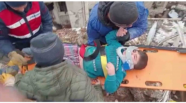Adıyaman'da depremin etkisiyle yıkılan binanın enkazında kalan 5 yaşındaki Yusuf ve bir vatandaş, 56 saat sonra enkazdan sağ çıkarıldı. Büyük sevinç yaşayan ekipler ve vatandaşlar birbirlerine sarıldı.