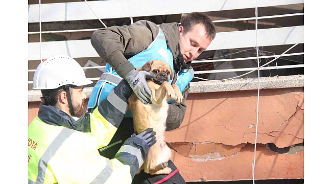 Kahramanmaraş'taki depremler 10 ili etkiledi. Depremden etkilenen iller arasında yerini alan Hatay'da çok sayıda bina yerle bir oldu. Özellikle şehir merkezinde birçok bina yıkılırken, onlarca insan enkaz altında kaldı. Ekiplerin dün başlattığı arama çalışmaları bugün de devam ederken, gün içinde 7 kişi sağ olarak çıkarıldı. Bugün arama yaptıkları sırada yavru bir köpeğin sesini duyan ekipler, onun da canını kurtarmak için harekete geçti. Yapılan çalışmayla balkona çıkarılan köpek, ekipler tarafından oradan alınarak kurtarıldı. Dünden beri köpeğin sesini duyduğunu ve kurtarılması için kapının önünde beklediğini söyleyen bir kadın, korktuğu görülen ve titreyen köpeği sahiplendi.