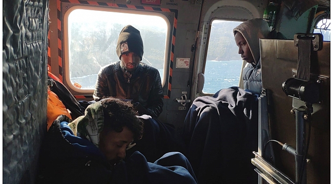 İzmir'in Çeşme ilçesi açıklarında Yunanistan unsurları tarafından geri itilen ve Karaada üzerinde mahsur kalan 8 düzensiz göçmen, Sahil Güvenlik helikopteri tarafından kurtarıldı.