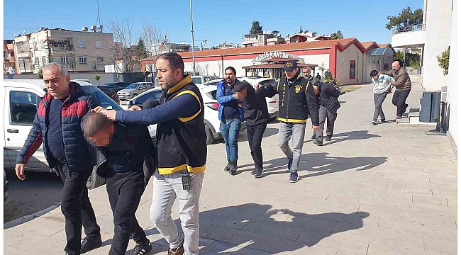 Gözaltına alınan zanlılar ifadeleri alınmak üzere Adana İl Emniyet Müdürlüğüne götürüldü.