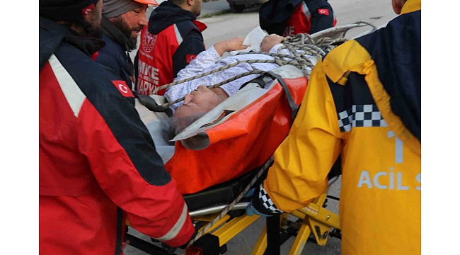 Osmaniye'de deprem sonrası ağır hasar oluşan 10 katlı apartmanın 6. katında mahsur kalan obezite hastası kadını, itfaiye ekipleri kurtardı.