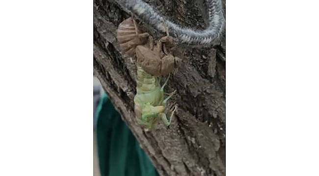 Elazığ'da ağustos böceğinin kabuk değiştirme anı saniye saniye görüntülendi.