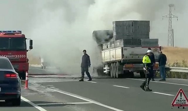 Olay, Elazığ-Malatya karayolunda meydana geldi. Edinilen bilgiye göre, tuğla yüklü tırın kupası, seyir haliyken bir anda alev aldı. Sürücü, tırı kenara çekerek araçtan indi. Haber verilmesi üzerine olay yerine itfaiye ekipleri sevk edildi. Ekiplerin müdahalesi ile yangın büyümeden söndürüldü.