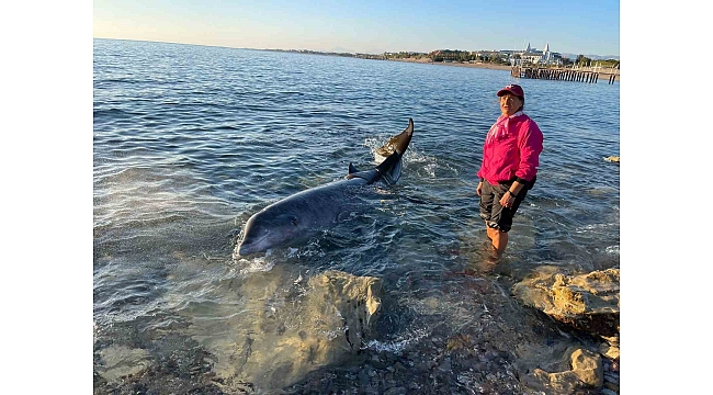 Kahramanmaraş merkezli depremlerin ardından Gaziantep'te evleri yıkılan Çay ailesi, bir süre önce Alanya'nın Okurcular Mahallesi'nde bir otele yerleşti. Aileden 17 yaşındaki depremzede Efe Çay, sahilde dolaşırken boyu yaklaşık 4 metreye yakın bir yunusun kıyıya vurduğunu fark etti. Genç adam, durumu ailesi ve yetkililerle paylaştı. Sahile, baba Savaş Çay ve Sahil Güvenlik Komutanlığına bağlı ekipler geldi. Çay ailesi ve ekipler, bir kayanın üzerinde mahsur kalan yunusu önce kuyruğundan çekti, ardından sürükleyip denize açılmasını sağladı. Yüzmeye başlayan yunus, açılıp bir süre sonra gözden kayboldu.