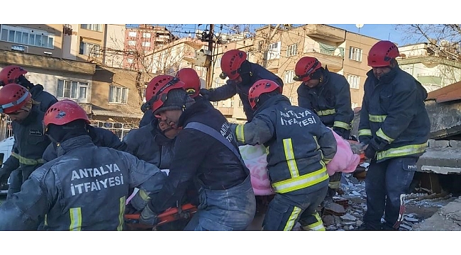 Antalya Büyükşehir Belediyesi itfaiye ekipleri, Hatay'da arama kurtarma faaliyetlerine destek veriyor. Depremin ikinci gününde itfaiye ekipleri, Hatay'da bir enkazda gerçekleştirdiği çalışmalarda umut verici bir kurtuluşa imza attı. Enkazın altında soğuk havaya rağmen yaşama tutunmayı başaran kız bebek Antalya itfaiyesi tarafından enkazdan çıkarıldı.