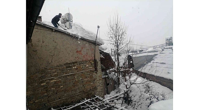Elazığ'ın Arıcak ilçesinde etkili olan yoğun kar yağışı nedeniyle çatılarda biriken karlar, ev sahipleri tarafından temizlendi.