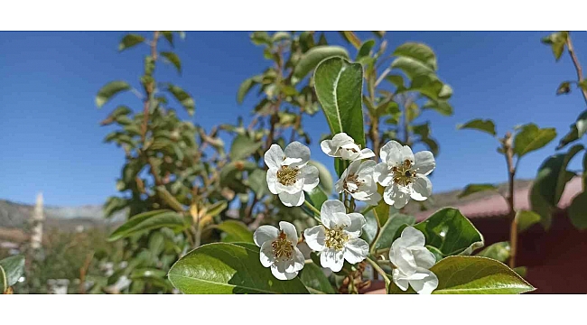 Elazığ'da armut ağacı, üzerinde meyvesi olmasına rağmen sonbahar mevsiminde tekrar çiçek açtı.