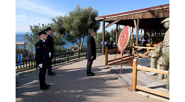 Gazi Mustafa Kemal Atatürk'ün 1924 yılında aracını durdurarak Kuşadası'nı izlediği Gazibeğendi Tepesi'nde düzenlenen törende Atatürk Büstü'ne çelenk bırakıldı.