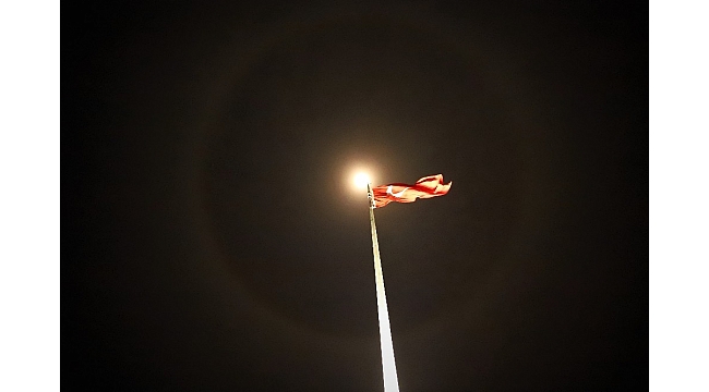 Elazığ'da Ay'ın etrafını saran çemberin görüntüsü, vatandaşların ilgisini çekti. Meteoroloji 13. Bölge Müdürlüğü, oluşan çemberin hale olduğu belirtti.