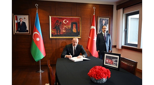 Azerbaycan Cumhurbaşkanı İlham Aliyev, depremde hayatını kaybedenler için Türkiye'nin Bakü Büyükelçiliğine taziye ziyaretinde bulundu. Aliyev, taziye defterine, "Tüm Azerbaycan halkı kardeş Türk halkının yanındadır" notunu yazdı.