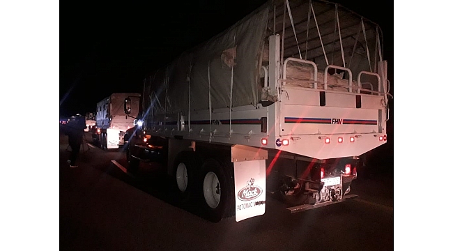 16 araçtan oluşan insani yardım konvoyu Türkiye'ye gönderildi