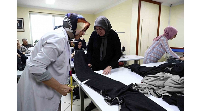 Bağcılar Belediyesi Kadın ve Aile Kültür Sanat Merkezi'nde dikiş-nakış kursunda kadınlar, Kahramanmaraş merkezli 10 ilde meydana gelen depremden etkilenen vatandaşlar için uyku tulumu dikiyor.