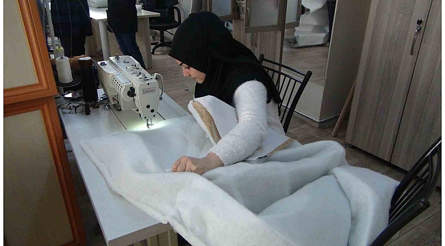 Kuruma yapılan kumaşları en iyi şekilde değerlendirmeye çalıştıklarını kaydeden kurs öğretmenlerinden Bedriye Vurgun, "Kurslarımıza ara verdiğimiz halde battaniye ve elyaf yorgan dikimi yapıyoruz. İnşallah yaptığımız yardımlar en kısa zamanda kendilerine ulaşır" şeklinde konuştu.