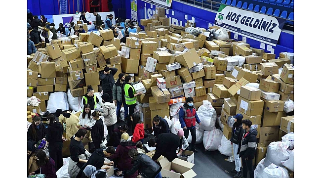 Başkan Bahadır, "Burada şu anda bir o kadar daha yardım malzemesi tırlara yüklenmeyi bekliyor. Özellikle gençler imece usulü ile adete arı misali çalışarak gönderilen yardım malzemelerini gruplara göre ayrıştırıyor, gıda malzemesi, hijyen malzemesi, ısınma ve barınma malzemeleri ayrı ayrı kolilere, ayrı ayrı çuvallara istiflenerek, kolilenerek yüklemeye hazır hale getiriliyor. Özellikle çocuk mamasından bebek bezine, uyku tulumundan battaniyeye, gıdadan ısınma sobasına kadar her türlü malzeme toplanıyor, ayrıştırılıyor ve bölgeye gönderiliyor" diye konuştu.