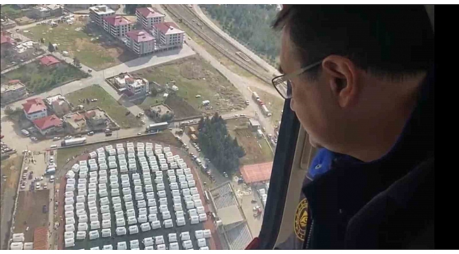 Enerji ve Tabii Kaynaklar Bakanı Fatih Dönmez, İslahiye'de deprem bölgesini havadan inceledi
