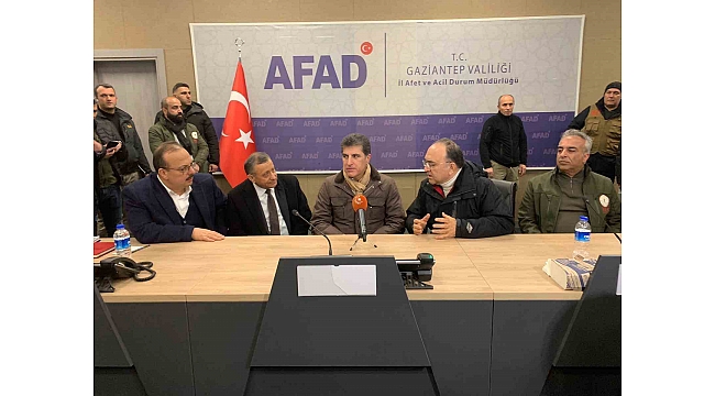 Irak Kürt Bölgesel Yönetimi (IKBY) Başkanı Neçirvan Barzani, Kahramanmaraş merkezli depremlerin ardından Gaziantep'e gelerek AFAD Koordinasyon merkezini ziyaret edip son gelişmeler hakkında bilgi aldı. Barzani, dualarının Türkiye ile olduğunu söyledi. Türkiye'nin bu afetin altından kalkabilecek güçte büyük bir devlet olduğunun altını çizen Barzani, depremde hayatını kaybedenlere rahmet, yaralılara acil şifalar diledi.