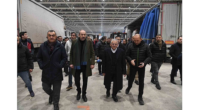 Deprem bölgelerine gidecek yardımlar için yapılan çalışmaları yerinde inceleyen Başkan Büyükkılıç, yetkililerden çalışmalar hakkında bilgiler aldı.