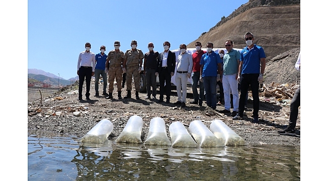 Elazığ'da Beyhan-1 Baraj Gölü'ne 50 bin pullu sazan yavrusu bırakıldı.