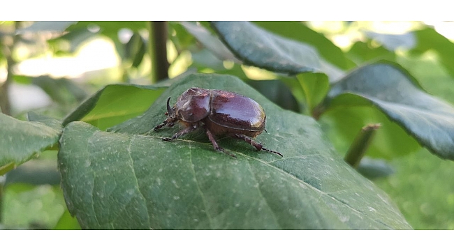 Ağın ilçesine bağlı Merkez Mahallesinde bir kişi, bahçede gezinen ilginç böceği gördü. Yaklaşıp incelediğinde daha önce defalarca haberlere konu olan gergedan böceği olduğunu fark ederek fotoğraflarını çeken vatandaş, ardından tekrar doğal ortamına bıraktı.