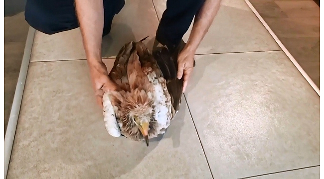 Elazığ'da bitkin halde bulunan kızıl akbaba, Doğa Koruma ve Milli Parklar Elazığ Müdürlüğü ekiplerine teslime edildi.