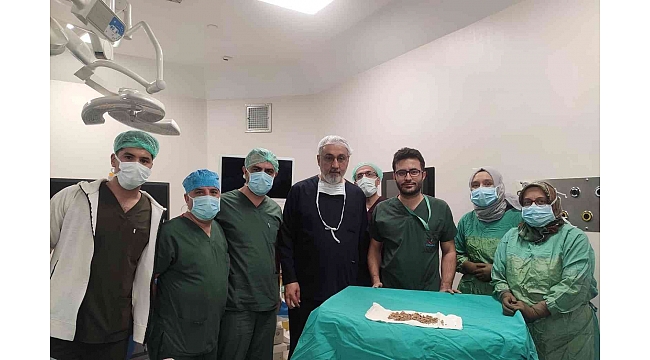 Fethi Sekin Şehir Hastanesi üroloji kliniğine müracaat eden hastanın böbreğinde 13x8 santimetre büyüklüğünde taş tespit edildi. Hastanın böbreğinde tespit edilen taş, yapılan kapalı ameliyat ile başarıyla çıkarıldı. Fethi Sekin Şehir Hastanesi üroloji kliniğinde görev yapan Üroloji Uzmanı Doç. Dr. Kadir Yıldırım, ''Hastamız bize gece terlemesi ve ağrı şikayetiyle müracaat etti. Yaptığımız muayene ve tetkikler neticesinde böbreğinde 13x8 santimetre büyüklüğünde bir taş tespit ettik. Hastamızın böbrek taşı böbreği tamamen dolduran büyüklükte idi. Böbrekteki taşı Perkütan Nefrolitotom (kapalı böbrek taşı ameliyatı) ile kırarak, parça parça çıkardık. Bu operasyonlar için daha önce açık ameliyatlar yapılırdı. Bu yöntemde, kamera sistemi ile yaklaşık 1 santimetre boyutunda bir kesi ile taşlar kırılıp böbrekten çıkarılıyor. Kapalı ameliyatta böbreğin hasar görmesi engellenebiliyor. Ameliyatı 1 santimetre kadar küçük bir kesiden yaptığımız için hastamız kısa süre içerisinde günlük yaşamına dönebilmektedir. Hastamızı bir süre kliniğimizde takip ettikten sonra şifa ile taburcu ettik'' dedi.