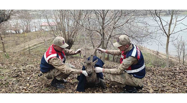 Elazığ'da nehirde boğulmak üzere olan dağ keçisi, jandarma tarafından kurtarıldı.