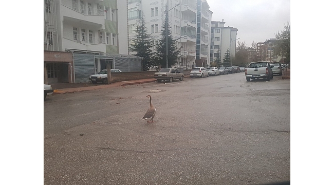 Ülke genelinde olduğu gibi Elazığ'da hafta sonu cadde ve sokaklar kısıtlamayla boş kaldı. Merkeze bağlı Cumhuriyet Mahallesi Çay Sokakta sabahın erken saatlerinde ise bir kaz gezintiye çıktı. O anlar bir vatandaş tarafından cep telefonu kamerası ile görüntülendi. Boş sokakta gezinen kaz bir süre sonra gözlerden kayboldu.
