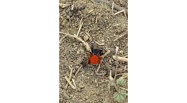 Elazığ'da halk arasında zehirli uğur böceği örümceği olarak bilinen 'Esus Cinnaberinus' görüldü.
