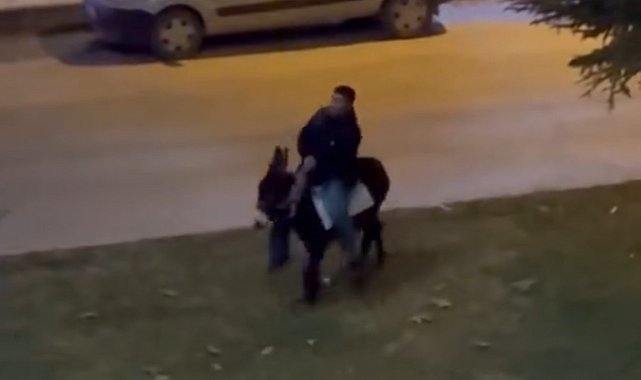Elazığ'da akşam saatlerinde eşeğiyle cadde boyunca dolaşan bir vatandaş dikkat çekti. Yunus Emre Bulvarı boyunca eşeğiyle gezen vatandaş, görenleri hem şaşırttı hem de tebessüm ettirdi. Renkli görüntüler oluşturan o anlar cep telefonu kamerasına yansıdı.