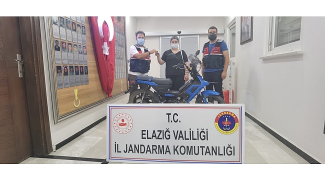 Elazığ'da jandarma ekiplerinin yaptığı çalışmada, çalınan motosiklet bulunarak sahibine teslim edildi.