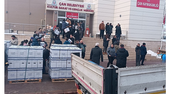 Çan Kaymakamı Mustafa Gürdal, Belediye Başkanvekili Harun Arslan ve Sivil toplum kuruluşları başkanlarıyla birlikte uğurlanan TIR'lar yola çıktı. Kahramanmaraş'ta meydana gelen ve 10 ili etkileyen depremin ardından seferber olan Çan halkı, Çan kaymakamlığının ve Belediye Başkanlığının koordinesinde Çan Belediyesi Kültür Sanat ve Gençlik merkezinde toplanan gıda malzemelerini koli olarak paketliyorlar. Çan Belediye Başkanvekili Harun Arslan, "Çan Kaymakamlığı ve Belediye Başkanlığımızın depremzedelere destek olmak için başlattığı yardım kampanyasına Çan halkımız yoğun bir katılım gösterdi. Toplanan battaniye ,tüp, giyecek soba ve gıda malzemelerinden oluşan 2 TIR'ımız bölgeye sevk edildi. Yardımlar devam ediyor. Personelimiz ve gönüllü vatandaşlarımız gelen yardımları ayırarak paketledikten sonra tırlarımıza yükleme yapılıyor. Çan'dan uzanan kardeşlik eline destek veren tüm Çan halkımıza teşekkür ediyorum. Gün birlik olma günüdür. Yüreğimiz ve desteğimiz bölgedeki vatandaşlarımız içindir" dedi.