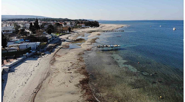 Çanakkale'de gelgit olaylarına bağlı olarak deniz suyu çekildi, Dardanos sahilinde kıyıdan açığa doğru yaklaşık 20 metrelik bölümde bazı tekneler karaya oturdu.