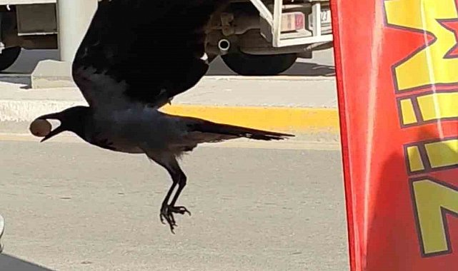 Elazığ merkez Olgunlar Mahallesi Sultan Fatih Caddesi'nde bir çerezcide ilginç ve gülümseten bir olay yaşandı. Dükkanının önüne gelen karga, iş yeri önünde bulunan ceviz dolu poşetini gözüne kestirdi. Zekasıyla bilinen karga, önce poşeti gagasıyla yırtarak açtı, ardından bir ceviz alarak uzaklaştı. Olayı fark eden dükkan sahibi bu anları cep telefonunun kamerasıyla kayda aldı.
