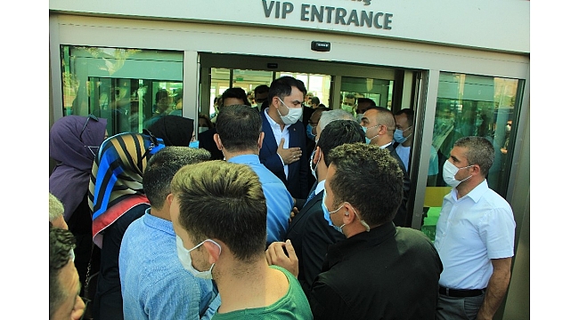 Bakan Kurum, beraberindekilerle birlikte şantiye alanlarına hareket etti.