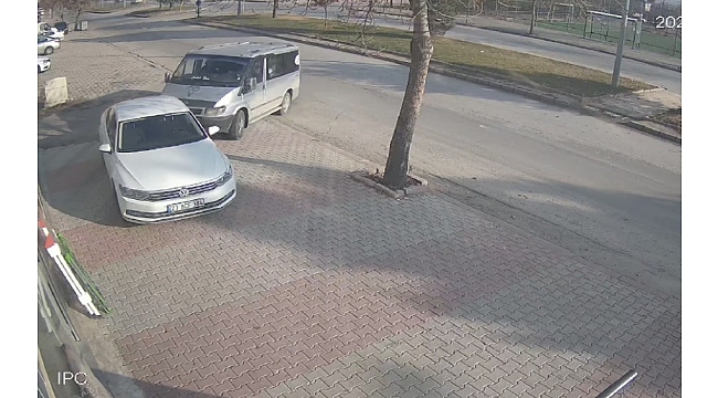 Olay, Kırklar Mahallesi Ali Rıza Septioğlu Bulvarı'nda meydana geldi. Edinilen bilgiye göre 15 yaşındaki sürücünün kullandığı transit, kontrolden çıkarak park halindeki otomobile çarptı. Çarpmanın etkisiyle otomobilin bir kısmı iş yerine girdi. Kazada, iş yerinde ve araçlarda maddi hasar oluşurken yaralanan olmadı. Kaza anı, iş yerinin güvenlik kameralarına yansıdı. İş yerinde bulunan bir kişinin kazayı fark edince son anda kurtulduğu ve panikle kaçtığı görüldü.