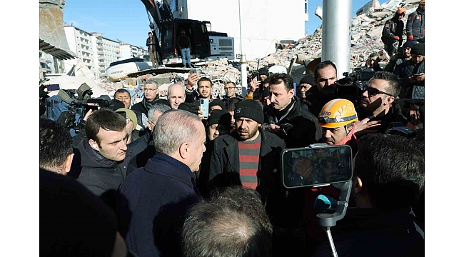 Cumhurbaşkanı Recep Tayyip Erdoğan, depremin vurduğu Kahramanmaraş'ın Pazarcık ilçesinde incelemelerde bulundu.