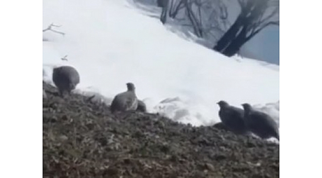 Elazığ'da dağ keklikleri sürü halinde yiyecek ararken görüntülendi.
