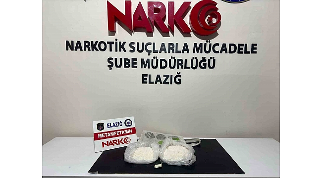Elazığ Cumhuriyet Başsavcılığı koordinesinde, Emniyet Müdürlüğü Narkotik Suçlarla Mücadele Şube Müdürlüğü tarafından, uyuşturucu, uyarıcı madde ticareti ve kullanımına yönelik yapılan operasyon gerçekleştirildi. Operasyonda, şüphe üzerine durdurulan araç içerisinde narkotik köpeği ile yapılan aramada, bagaj kısmına zulalanmış şekilde 2 parça halinde 1 kg 587,24 gram metamfetamin maddesi ele geçirildi.