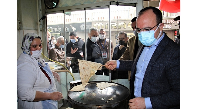 Elazığ'da Koronavirüs ile mücadele kapsamında denetime çıkan Vali Erkaya Yırık, çay borçlarını ödeyip, gözleme (patila) yaparak yanındakilere ikram etti.