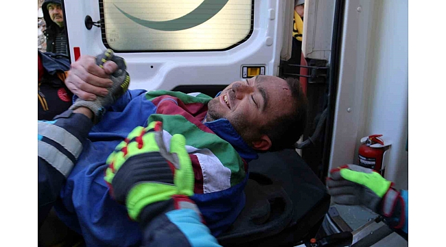 Mehmet Acar, kendisini çıkartan görevlilerin elini tutup moral bulmaya çalıştı. Acar ekiplere teşekkür ederken, tedavisi için ambulansla en yakın sağlık kuruluşuna götürüldü.