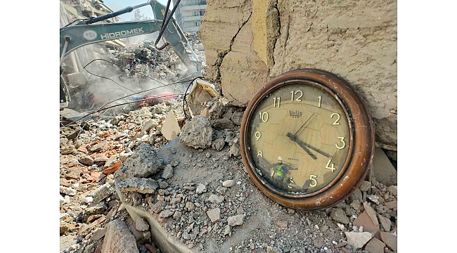 Çalışmalar sırasında ekip Refik Kocabıyık'ın enkaz ve demir yığınları arasında bulduğu saatin, 04.17'de durduğunu görünce büyük üzüntü yaşadı. Kenara koyulan duvar saatinin camına arama kurtarma çalışmalarının yansıdığı anlar deprem anının kötü göstergesi olarak Hikmet Şen'in, objektifine böyle yansıdı.