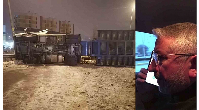 Çorum Belediyesi'ne ait çekici tır, ekskavatörü deprem bölgesine ulaştırmak üzere dün akşam saatlerinde Çorum'dan yola çıktı. Mustafa Kaya'nın kullandığı tır, Kayseri Pınarbaşı Kavşağı'nda yoldaki buzlanma nedeniyle kontrolden çıkarak devrildi. Tır sürücü Mustafa Kaya kazadan yara almadan kurtulsa da iş makinesini deprem bölgesine ulaştıramamış olmanın büyük üzüntüsünü yaşadı.