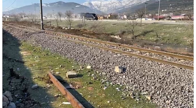 Depremin şiddetinden dolayı Kahramanmaraş'ın Şekeroba Mahallesi'nden geçen ve hasar gören tren rayları onarıldı.