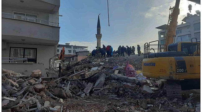 Hatay Dörtyol'da depremde hasar alan ve tehlike arz eden minare ekipler tarafından yıkıldı.