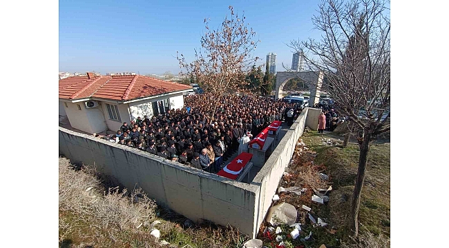 Gaziantep'te çöken binanın altında kalarak hayatını kaybeden jandarma astsubay ve ailesi, Denizli'de askeri törenle son yolculuğuna uğurlandı.