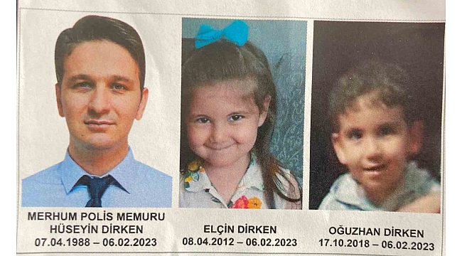 Kahramanmaraş'ta meydana gelen depremler birçok ilde can kaybına neden oldu. Depremlerin en çok hasar verdiği illerden Adıyaman'da İl Emniyet Müdürlüğü kadrosunda görevli 35 yaşındaki polis memuru Hüseyin Dirken, eşi Cansu ve çocukları Elçin (11) ile Oğuzhan (5) da enkaz altında kalarak hayatını kaybetti. Ekiplerin çalışması ile enkazdan cansız bedenleri çıkarılan aileden baba ile 2 çocuğunun naaşları memleketi Mersin'in Erdemli ilçesine getirildi. Türbe Mezarlığı'nda baba ve çocukları için tören düzenlendi. Öz geçmişi okunan polis memuru ve çocuklarının cenazeleri, kılınan cenaze namazının ardından meslektaşları tarafından omuzlara alınarak mezarlığa götürüldü. Daha önce Ankara, İstanbul, Tokat'ta da görev yapan 14 yıllık polis memuru ile çocukları gözyaşları arasında toprağa verildi.