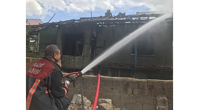 Elazığ'da depremde hasar alıp boşaltılan 2 katlı evde yangın çıktı, itfaiye ekipleri tarafından söndürüldü.